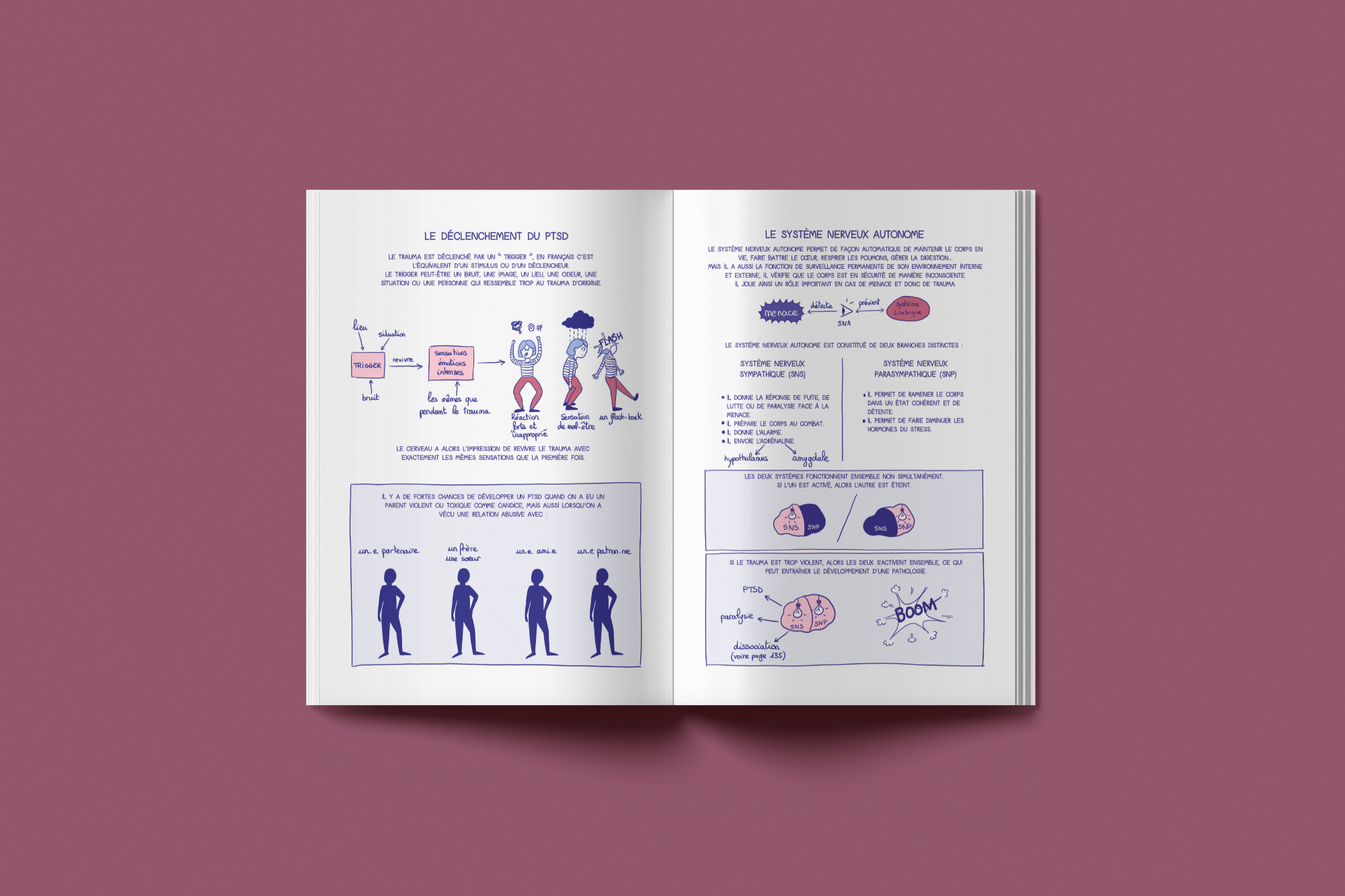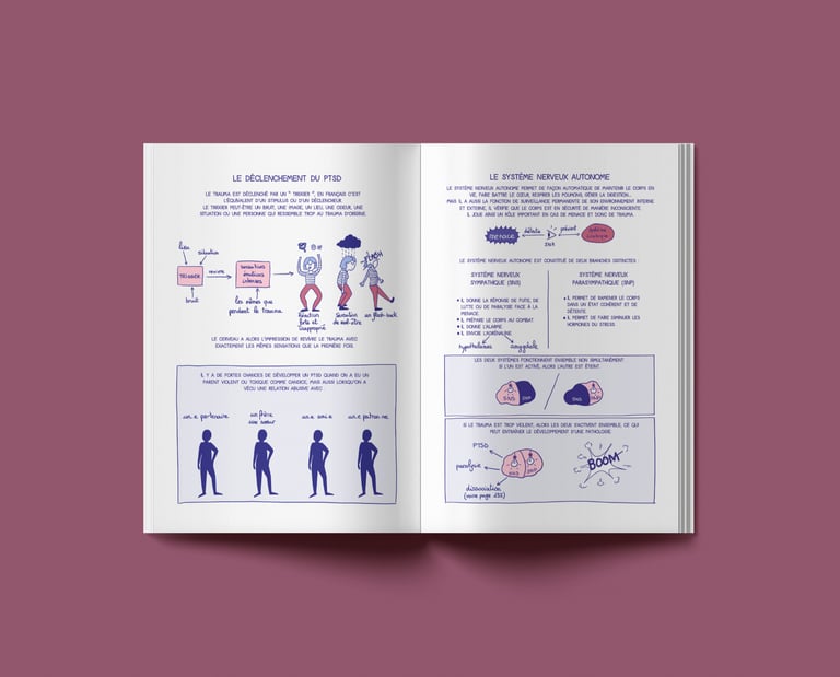Scénario et illustrations d'une bande-dessinée auto-bio sur le thème du lien mère-enfant, l'éducation dans une famille toxique et manipulatrice, des violences faites aux enfants, de l'inceste, des traumatismes et de la méthode EMDR.