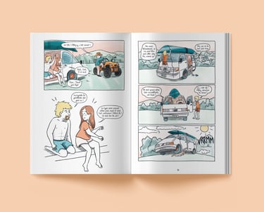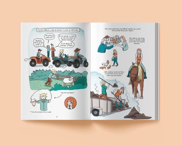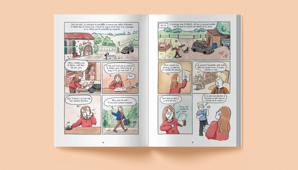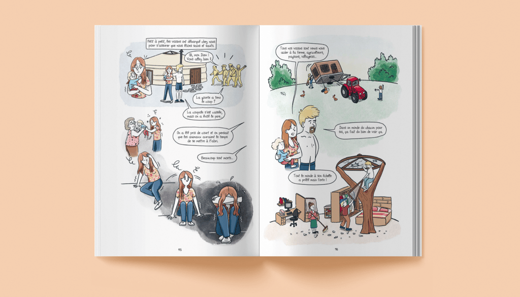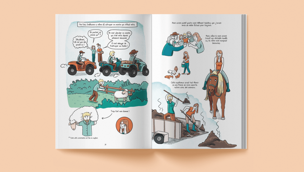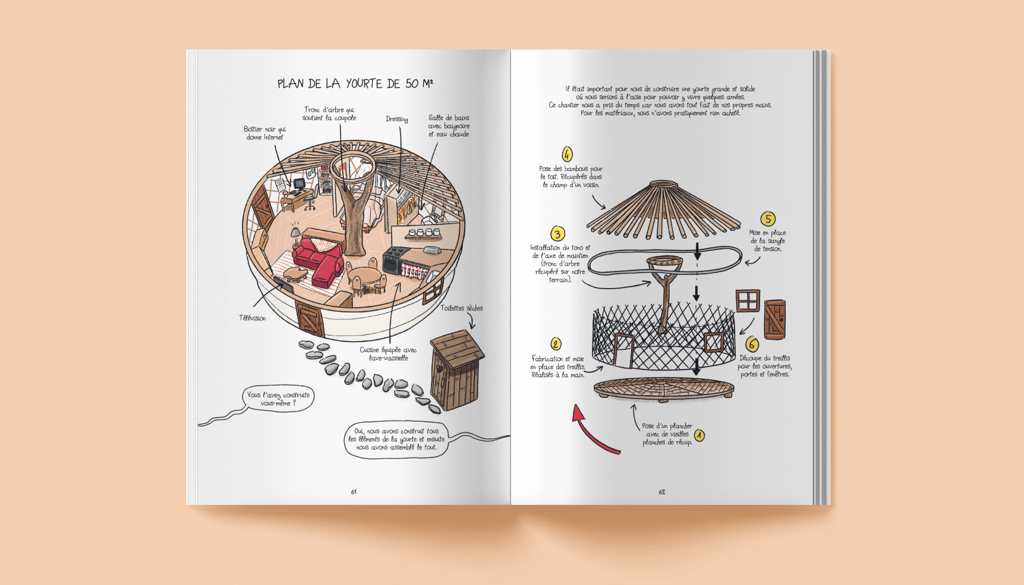 Scénario et illustrations sur l'histoire vraie de Camille et Guillaume, qui quittent tout pour aller vivre dans une yourte et monter leur ferme.